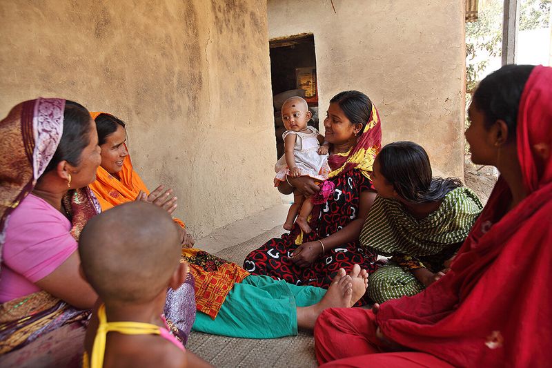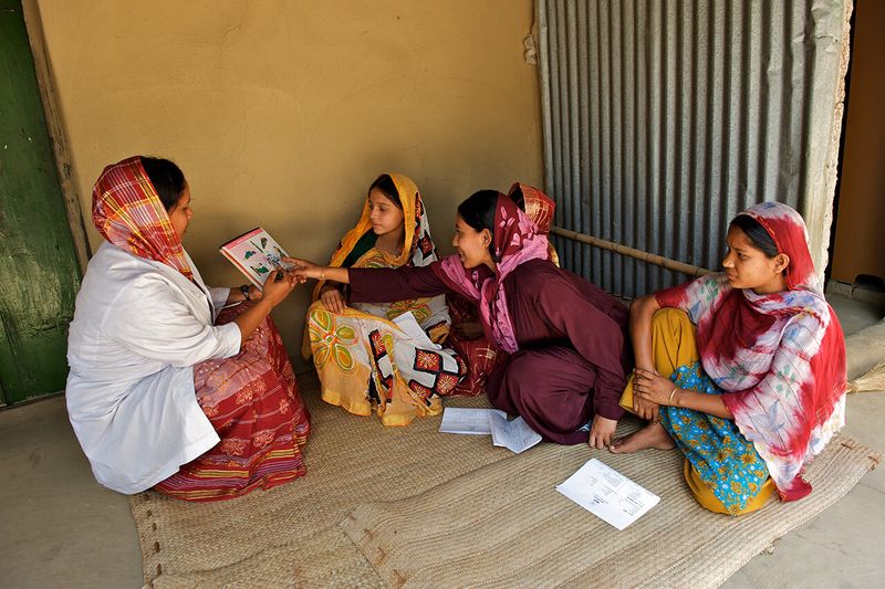 Jhorna Akhter, a Community Health Worker conducts a group health education session in Gazipur, Bangladesh. ©BRAC/Shehzad Noorani