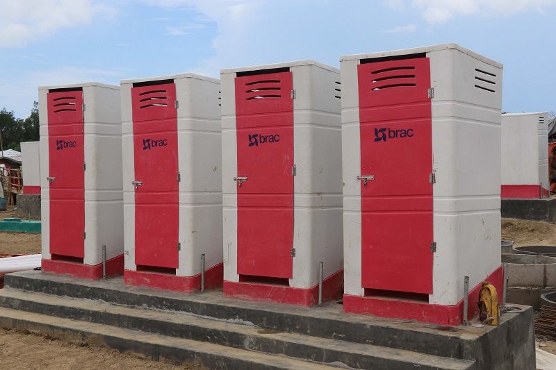 110 of these mobile latrines, made of fibre reinforced polymer, have been set up. Waste from the latrines are directly transferred to a biogas chamber. ©BRAC