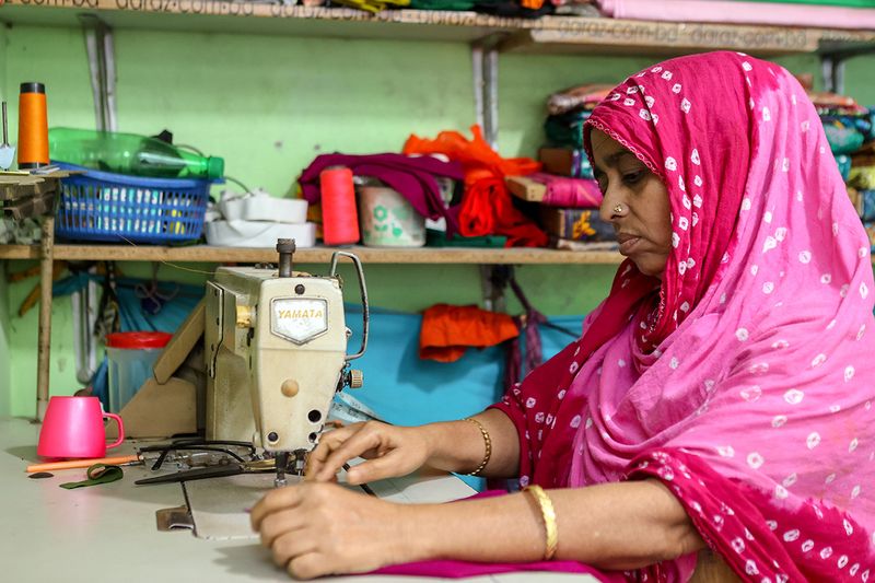 We oscillated between surviving and starving, until our first child went to school. We had to take on more work then so we could be sure we’d be able to pay his school fees. I borrowed my sister’s old pedal-driven sewing machine, taught myself how to operate it and started tailoring from home. On a good day I would make BDT 200 (USD 2) – but good days were rare.