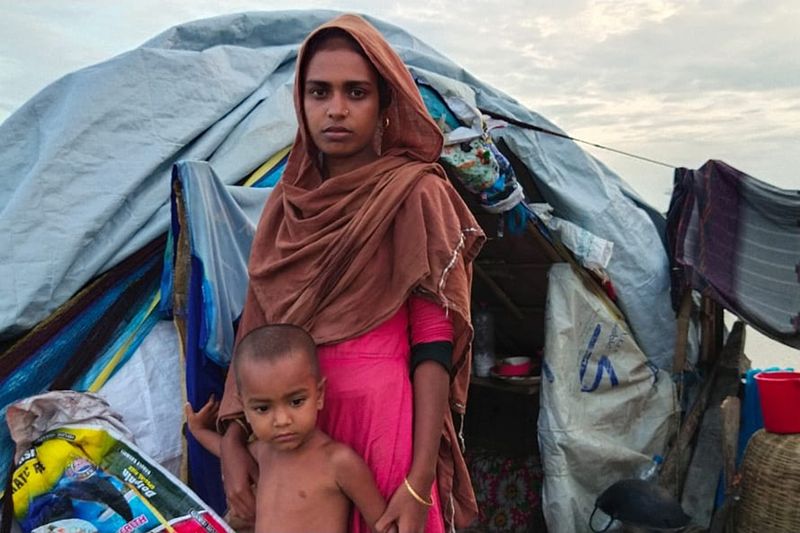 Selina Khatun stayed in a temporary shelter on the embankment, after Cyclone Amphan swept away her house in Assasuni, Satkhira, southern Bangladesh