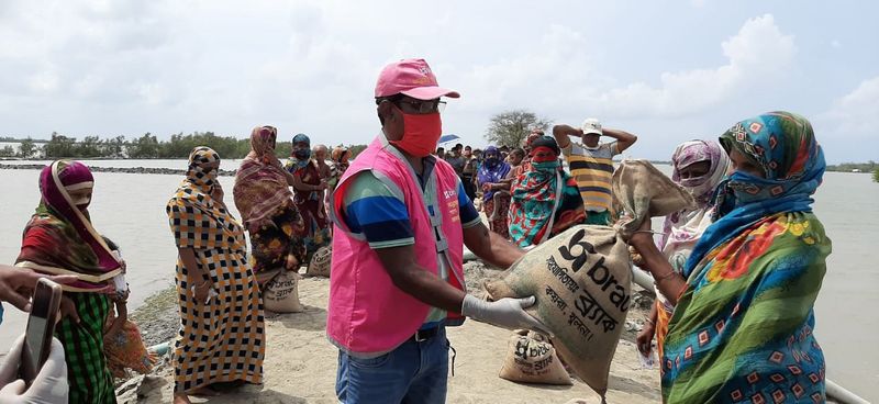 Emergency food distribution after Cyclone Amphan in Koyra, Khulna, southern Bangladesh