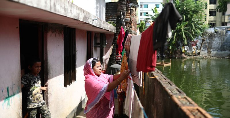 “There was drain water seeping into our little room. There was no clean water to give to my children.” Photo: BRAC/Pronob Ghosh