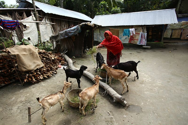 Three years on, Lipi has a sustainable income. She was able to build a stronger house, cultivate vegetables and livestock, and send her child to school.
