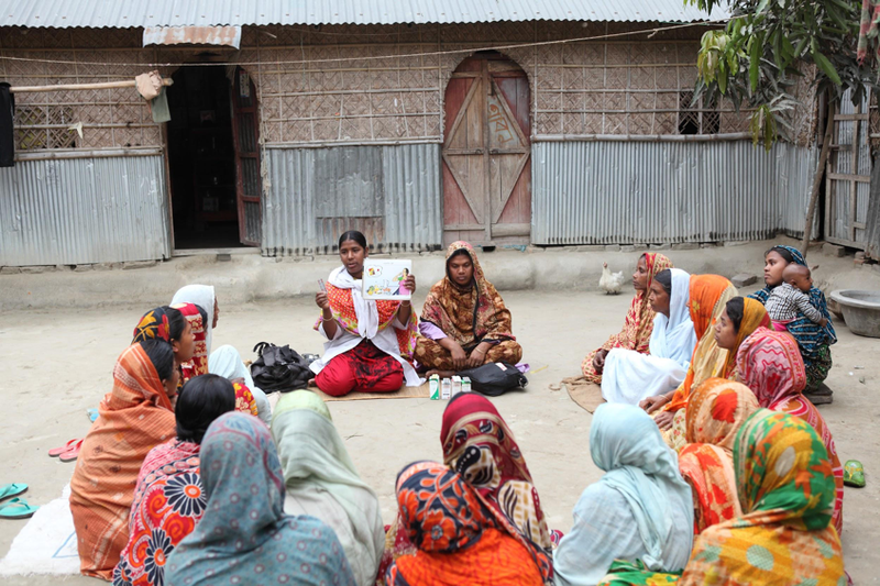 Shasthya kormi and shasthya shebika conducting a courtyard forum in order to discuss and raise awareness about adolescent and reproductive health.