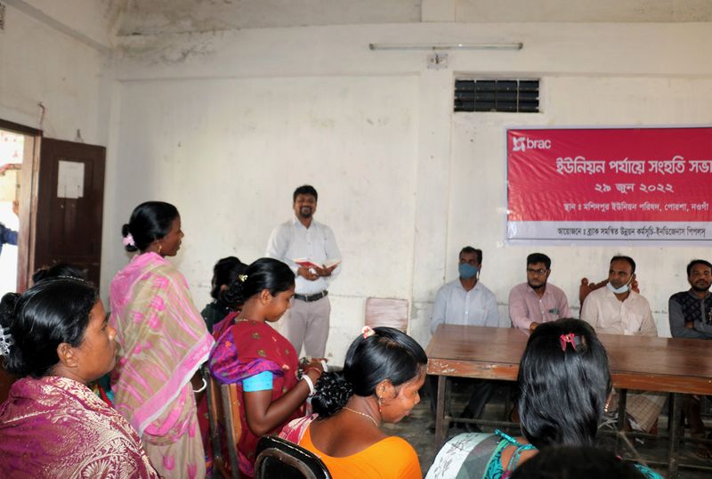 Panmoni Pahan advocating for her community at a ‘Solidarity Meeting’ to the local government representatives. Photo credit: Alpona J Kujur © BRAC, 2022