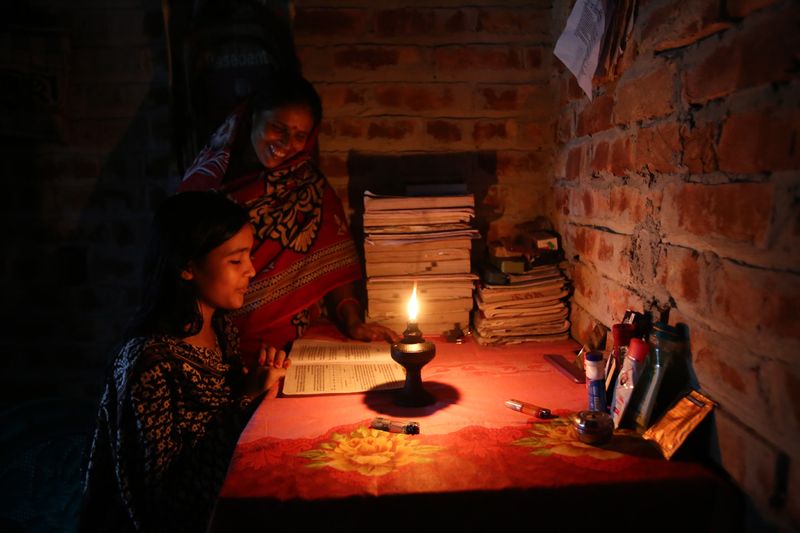 Barsha’s mother Arti, a UPG programme participant, helps with her nightly schoolwork. Photo credit: Pronob Ghosh © BRAC