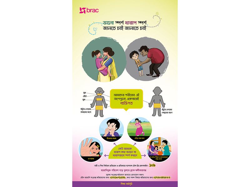 Poster for primary-level students on recognising good touch and bad touch. © BRAC