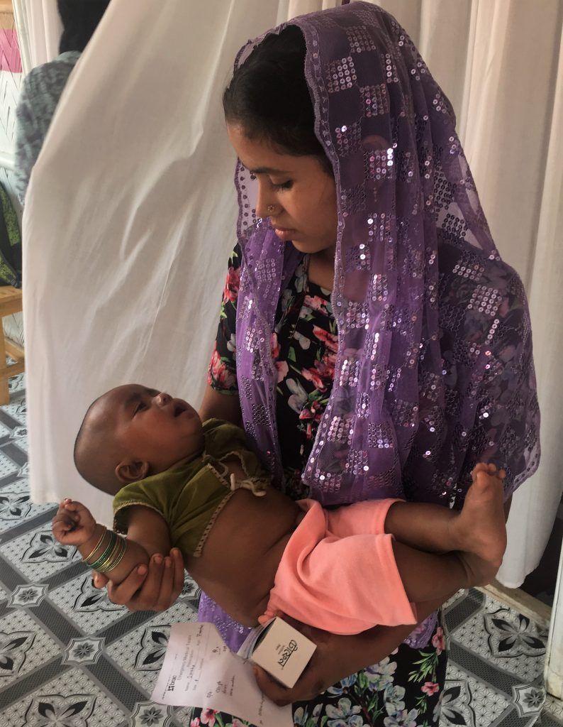 Noor Hasina–a Rohingya refugee and new mother–spent a good part of her morning at one of BRAC’s primary healthcare centres with her six-month-old daughter, Israa. First, they saw a doctor for a diaper rash Israa was having, and then, Noor had her second breast feeding counseling session with one of the nutritional counselors. She finished her time at the centre passing by a midwife to request a pregnancy test. As she moved from the nutritional corner with Israa to the midwife room, I got to learn more about her story.