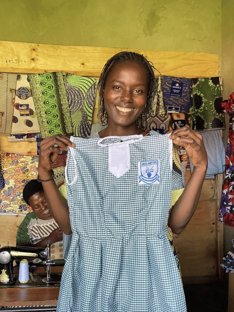 When my son enrolled in school, I couldn’t afford to make them uniforms. The month I made my first profit, I immediately bought fabric and made two very smart uniforms for him. My work did not go unnoticed. I secured a contract with the school to make uniforms for all their students. I tailored 50 uniforms on my first order.