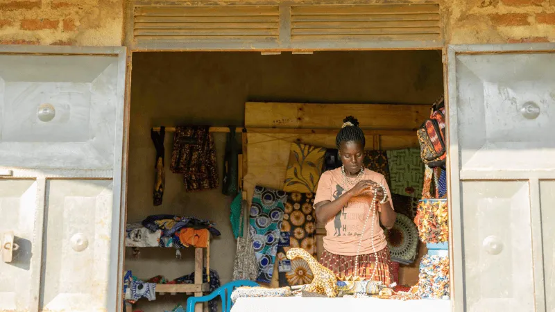 I reuse discarded scraps of cloth, bottle caps, wires and plastic bags to make my products. My products started getting a lot of attention within the first few months of opening. I now make a profit of 300,000 UG shillings ($80) each month. My mother has since joined the business and moved in with her own sewing machine. We chat and laugh as we design jewelry from seeds and sew bags from old, brightly colored gomesi (dresses women in Uganda wear).