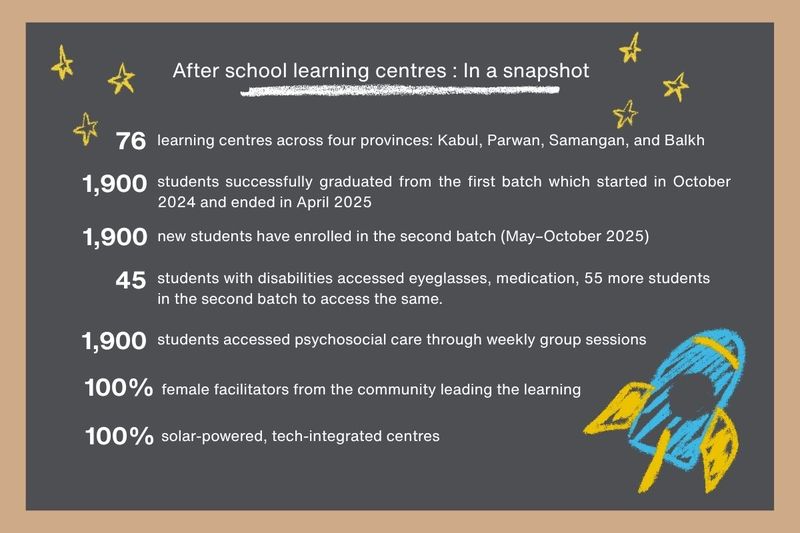 Introduced in 2024, these centers go beyond traditional subjects—integrating lessons in literacy, numeracy, digital literacy, psychosocial wellbeing, and life skills. It especially serves the need to support girls who are on the verge of dropping out by employing all-female, trained facilitators from the community.