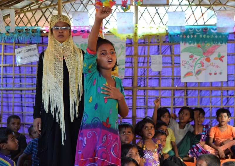 Inside one of BRAC’s safe spaces where adolescents are provided with training and counselling on cross-cutting issues, primarily, awareness on protection. Photo: BRAC