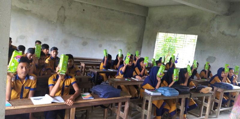 Students of Ujirpur MPJB Secondary Girls’ School in Jessore, southwest Bangladesh, participating in a napkin drive. Photo credit: BRAC © 2022