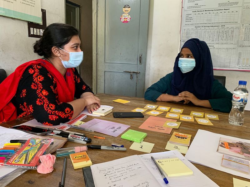 Selina sharing her future plans during a card-sorting exercise as part of Shakti micro-pilot design, Bangladesh. Photo credit: © BRAC
