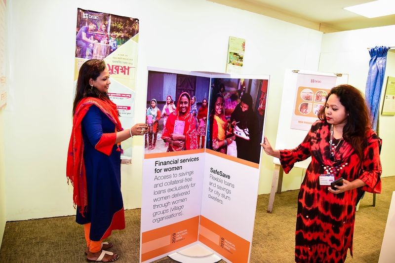 To commemorate the week, BRAC’s microfinance programme organised an exhibition at BRAC’s head office in Dhaka, Bangladesh. A replica of a typical microfinance branch office was set up showing the tailored products and services that every client has access, and also presenting our work in client protection as well as digital technology in field operations and digital financial services.