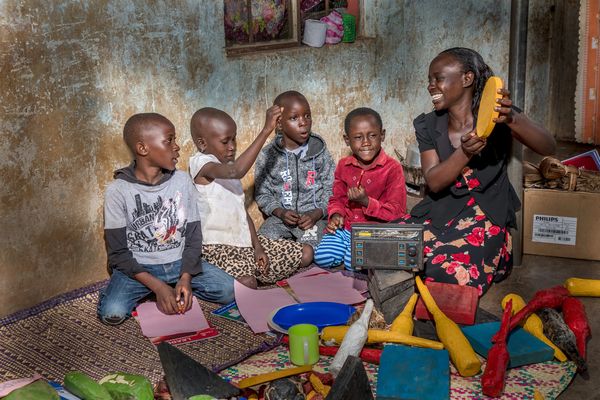 BRAC’s Radio Play Labs deliver remote, playful learning experiences for children ages three to six in Uganda to support their development of critical cognitive and social skills. Based on BRAC’s flagship early childhood development (ECD) Play Lab model, the radio adaptation equips parents and caregivers with the tools and information to support their children through remote learning experiences, with a focus on interactive activities related to literacy and numeracy, storytelling, positive parenting, stimulation, and well-being, among other areas.