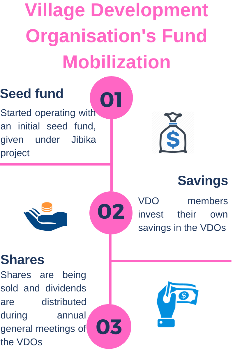 Each of the VDOs has an executive committee, elected through the members’ votes. The committees run daily administration work – managing loans, maintaining members’ accounts and conducting meetings to plan for the future. Dividends are distributed, acting as motivation to members and adding transparency to the process.