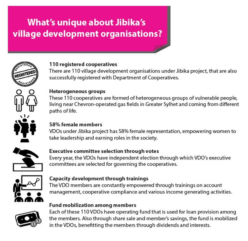 These changes did not happen overnight. 110 village development organisations were formed under the Jibika project to support people in the villages affected by the gas fields. The first phase of the project was successful, and the second phase began in May. This time, the vision was to leading these VDOs towards sustainability.