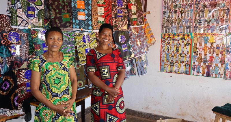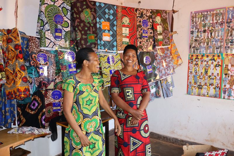 Marthe and Adelle each took out a $100 loan from BRAC. They started with one machine and a handful of fabrics: the basics to start their business. After paying back her first loan with proceeds from the business, Marthe took out a second loan of $200 to further invest in its growth.