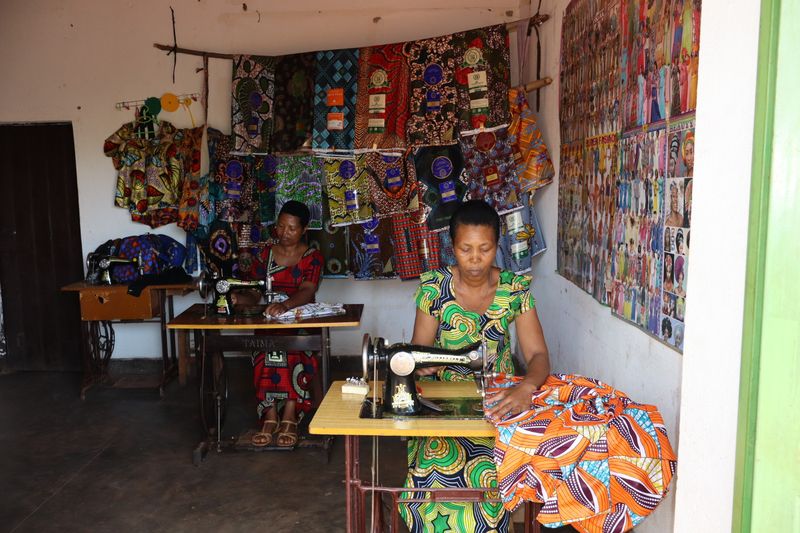 With their increasing success, Marthe and Adelle realized they could give back to their community as their business grew. Their internship program has so far helped two young women from their town learn the ropes of sewing and running a business. The students even had access to their own machine to practice on!