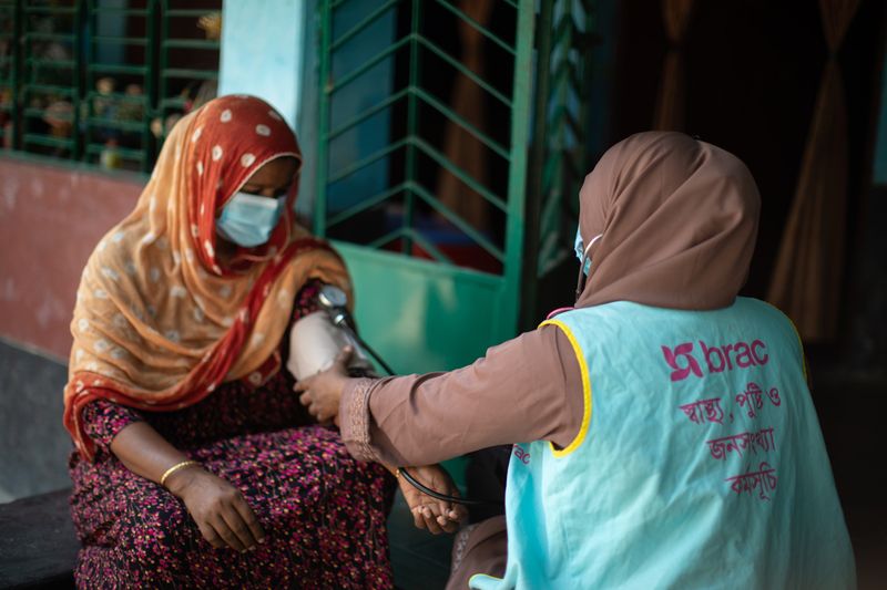 BRAC’s Community Health Workers going door-to-door to check community members’ blood pressures. © BRAC 2023