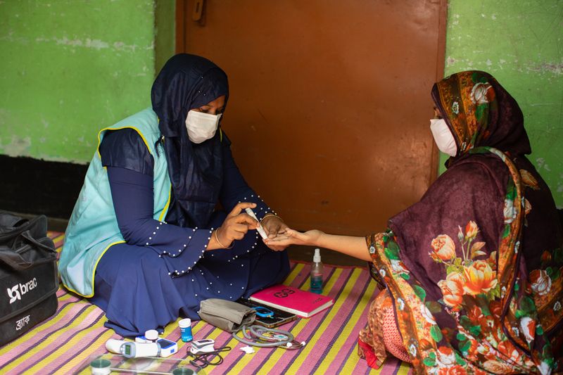 By bringing diabetes testing to doorsteps, Community Health Workers are increasing awareness about non-communicable diseases and referring participants to local hospitals. © BRAC 2023