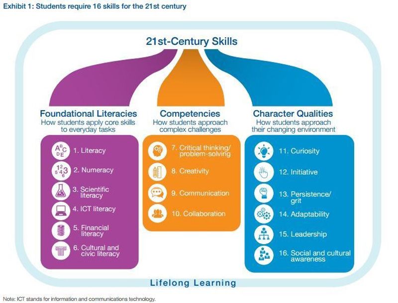 What I’m trying to get at is the fact that skills or skill sets are never going to be the same as generations progress. In the 21st-century, skills are defined as the competencies shown in the following diagram. So how can we inculcate skills like cultural and civic literacy, or creativity, or grit into young people of today?
