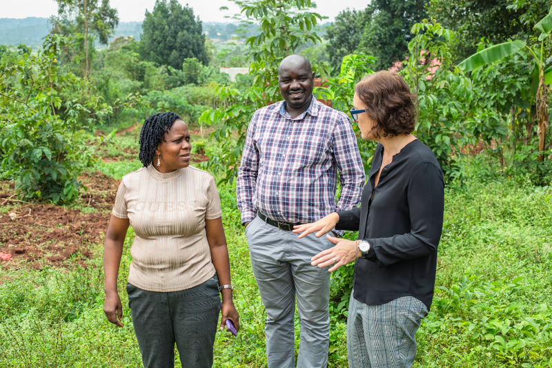 Julia chats with BRAC staff members while visiting a rural region in Uganda.