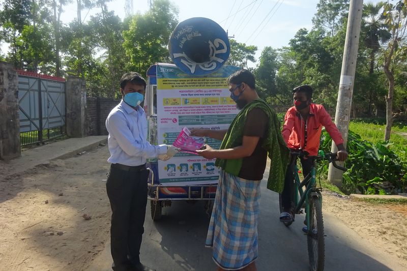 COVID-19 precaution messages were spread through loudspeakers, leaflets, stickers as well as practical demonstrations on health protocol maintenance.