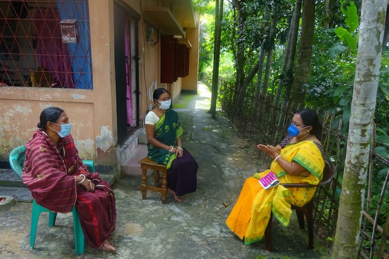 Hand-washing booths, infrared thermometers, and masks were placed in every village organisation office to ensure health and safety at work. Training resumed, whilst ensuring safety precautions, and meetings were conducted in small groups while maintaining social distancing.