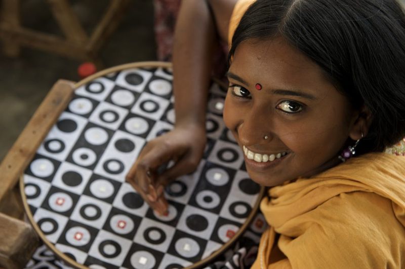 An artisan in rural Bangladesh handcrafting an Aarong product. Copyright: © Shehzad Nooorani/BRAC, 2018