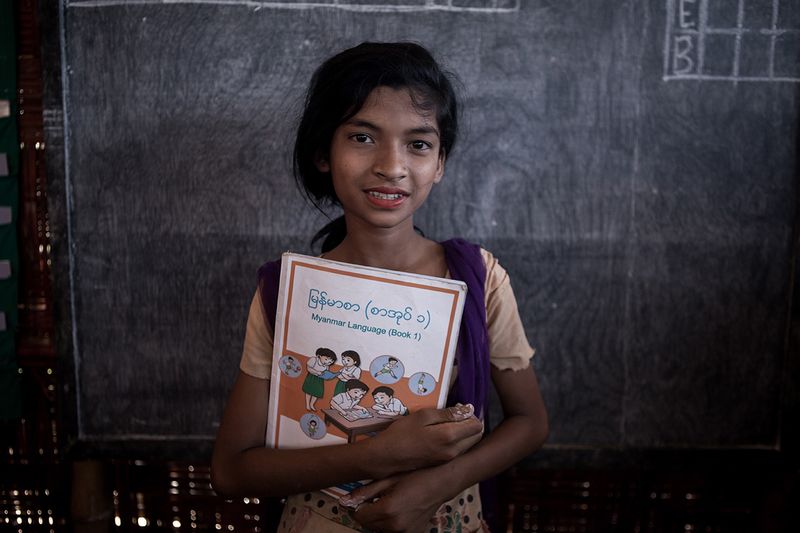 A classroom was the last thing on 10-year-old Showkat’s mind when she entered Bangladesh in August 2017. She was in an unknown land, had nothing with her from her home and had trekked through a jungle and crossed a sea, hungry and exhausted, with only her aunt for support.
