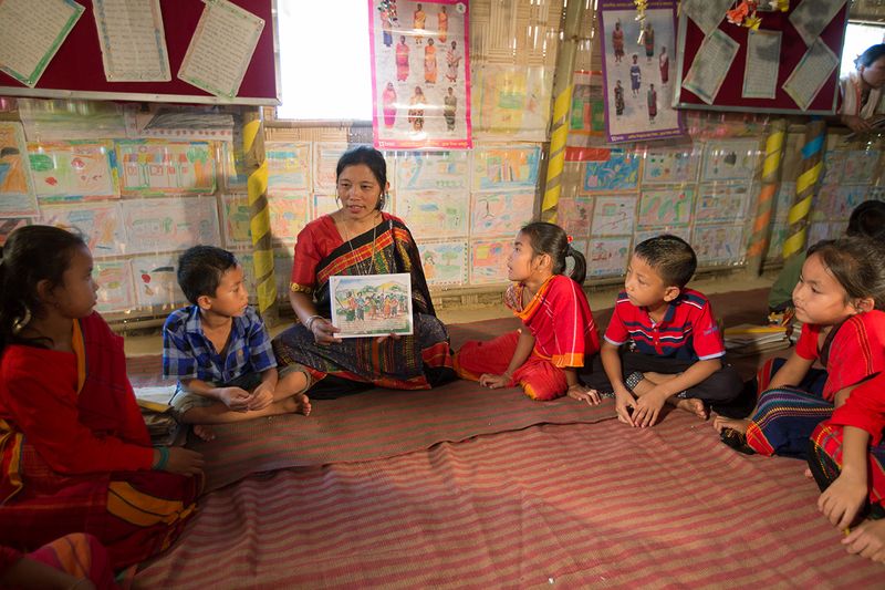 In our classrooms, one teacher speaks in Bengali while another helps to facilitate in their own language.